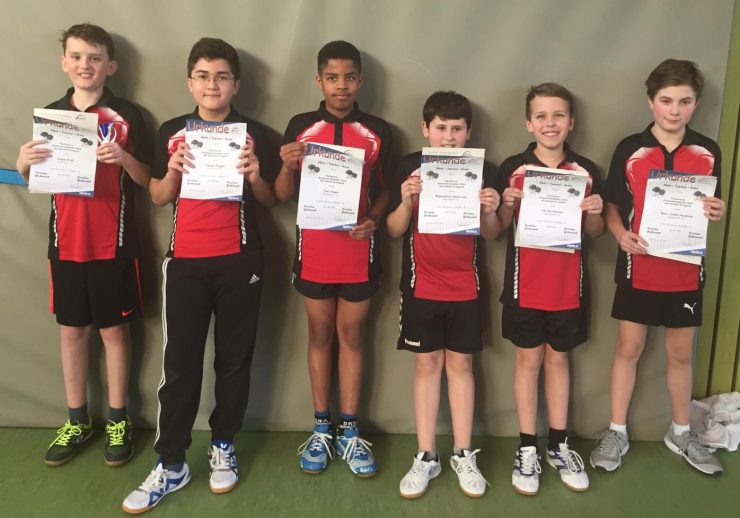 In der A-Schüler-Konkurrenz konnte Jonas Kröll für Neuenhain auftrumpfen. Für ihn gab es auch Bronze. In dem recht ausgeglichenen Feld hatte das komplette Podium eine Bilanz von 5:2, sodass die Satzbilanz hier entscheidend war. Jonas lag somit nur zwei Sätze hinter dem Ersten, Tim Daniel aus Eschborn. In die Finalgruppe schafften es auch Maksymilian Kwiecinski und Tim Pertlwieser, auf Platz 7 und Platz 8.